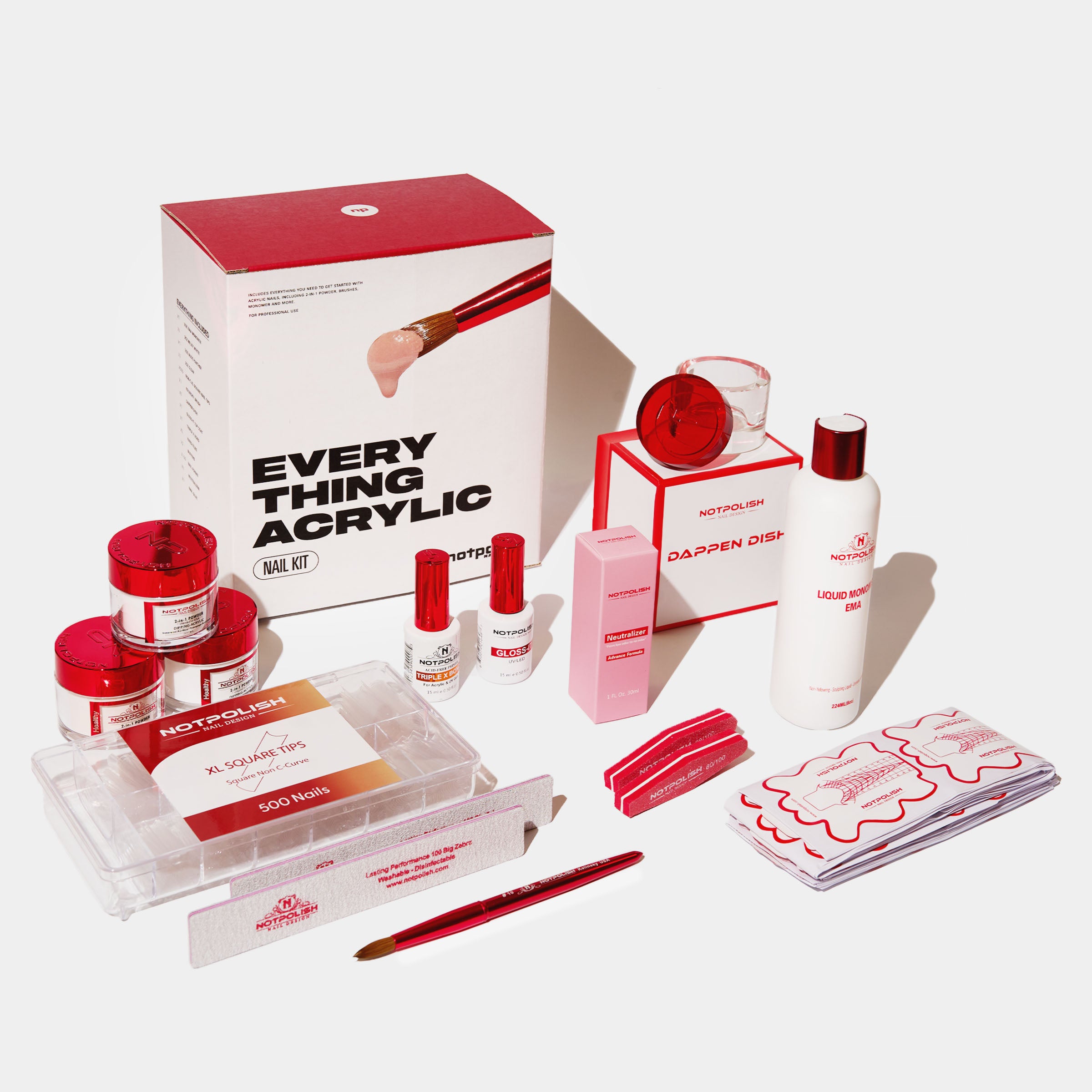 I love the entire kit and would have given 5 stars the only problem that I had was with the nail glue I couldn't get the tips to adhere to my natural nail with it. Overall I love how beginner friendly the acrylic is.