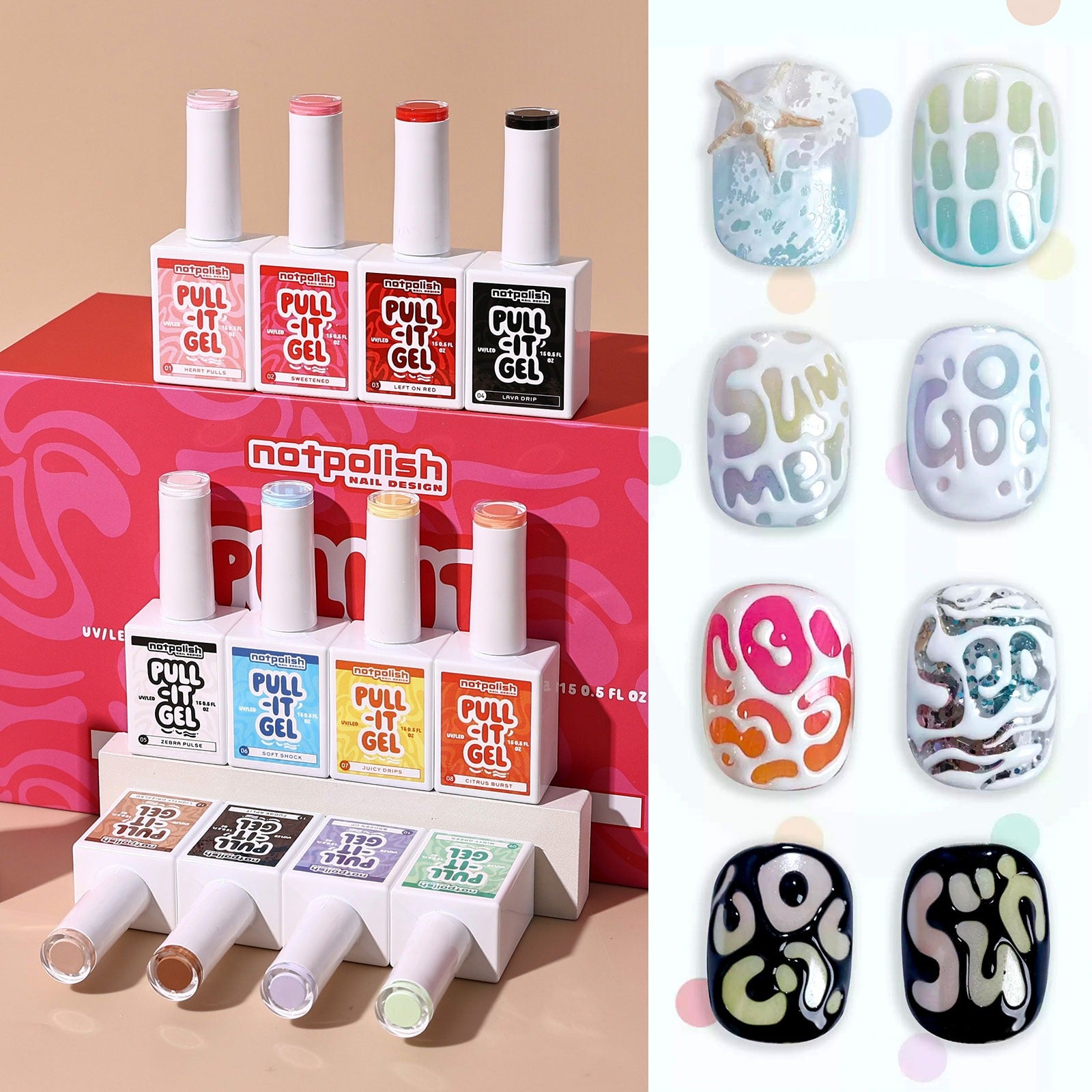 Get creative like never before with our Pull-It Gel bundle, designed for effortless negative-space nail art. This set includes 12 vibrant gel polish colors and a special reactive base coat that works together to create customizable designs with ease.